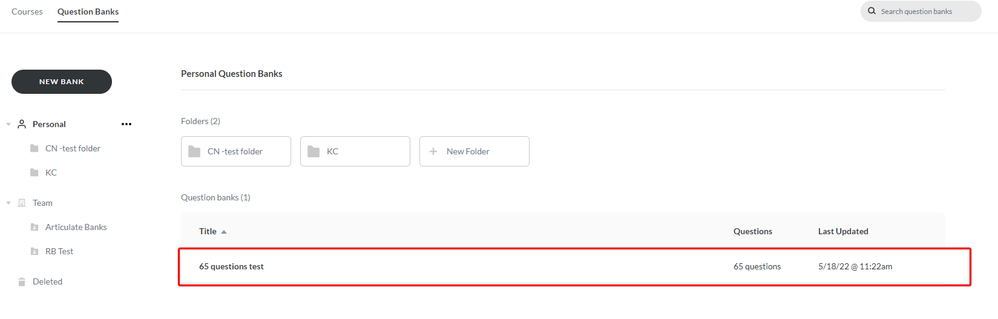 And there’s no limit on how many question banks you can create. To help you stay organized, you can organize your question banks into different folders. For example, you could create a folder for each course or topic.