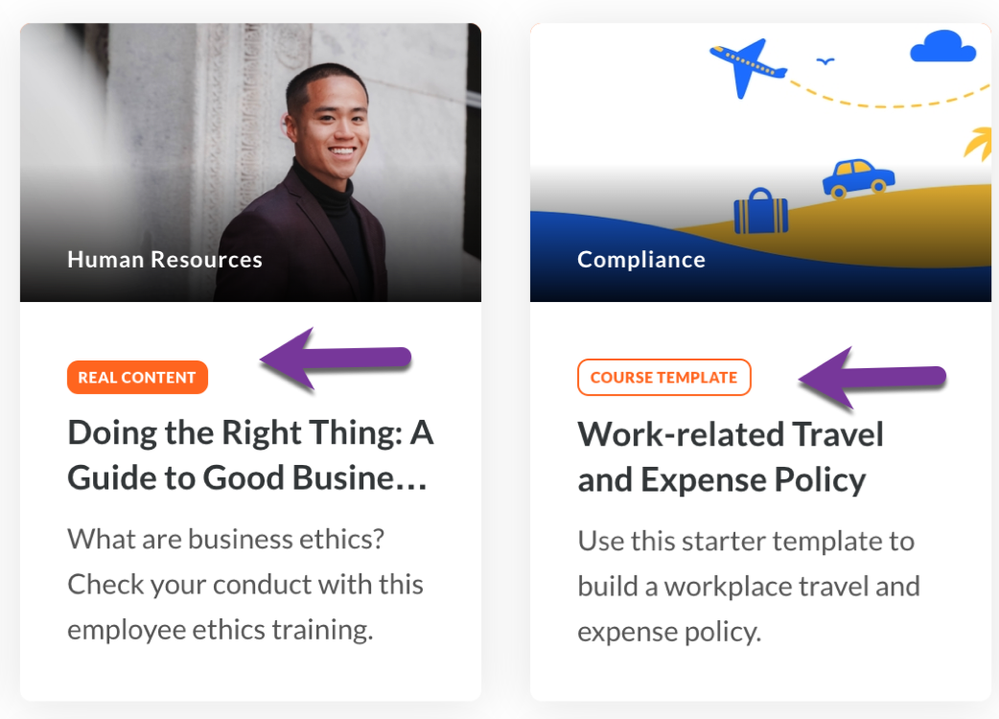 To answer your second question, our new Microlearning feature includes templates with real and placeholder content that are brand new!