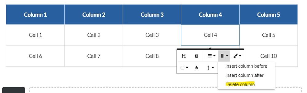 I am trying to copy the demonstration (above) to delete 2 columns from my Rise Table block. My dropdown arrows are not working; therefore, not providing me the option to delete a column or add rows.