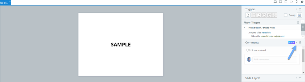 Thank you for this new feature. I was using it extensively this week for the first time. I like the idea of it, but I don't like the placement between the layer and trigger panel. I had to constantly expand and close the comment panel to look at my triggers. I guess I see that right side of the screen as "my development area" and when you have a ton of triggers on a slide, the comment panel interferes. Can you move it? Maybe to the ribbon?