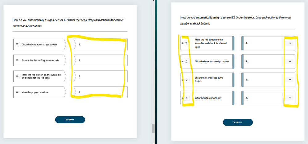 Exactly, the number in the box is very confusing from a UX perspective. Additionally, the new exercise format is highly problematic for users. I often use exercises where participants need to put elements in the correct order. In the left column, I put the elements to arrange, and in the right column, the numbers.