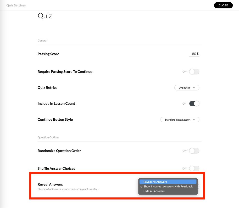 Or you can choose to Hide All Answers if you don't want to show any feedback.