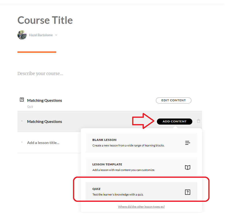 1. Add a Quiz to your course