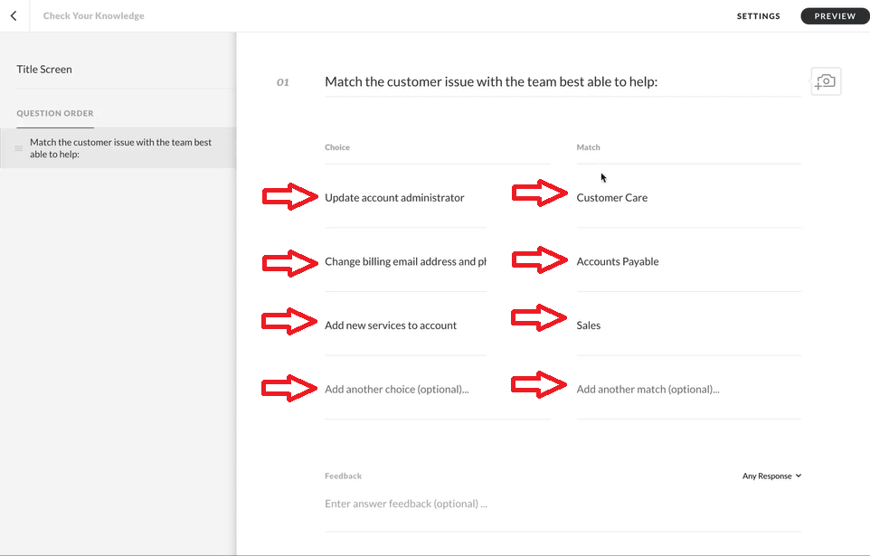 New Rise Feature: Matching Questions