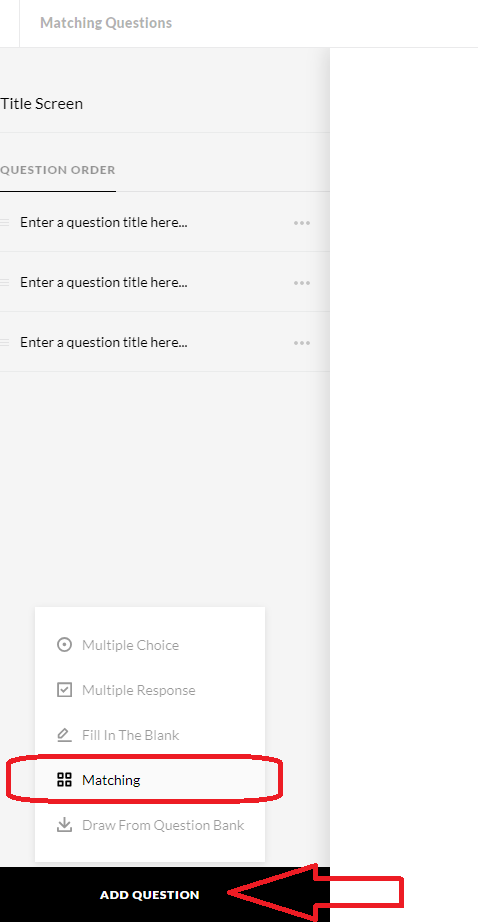 2. Select Matching Questions at the bottom left side