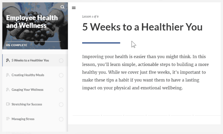 Breaking news! We just released a cool new feature in Rise that lets learners search course content. Now they can use a field in the course sidebar to search keywords and jump directly to relevant results. This is a great way to let learners find key, useful info.