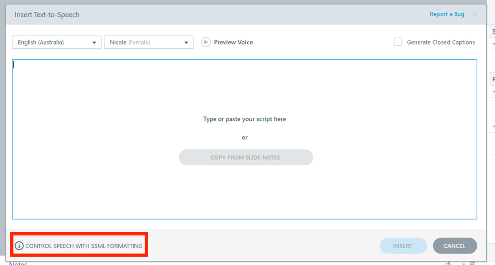 If your Storyline 360 version is not 3.83.31444.0, please update to the latest version to receive the SSML formatting updates.