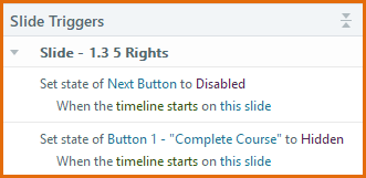 For example, the conditions could check whether the state of buttons on the slide = Visited. Or a condition could check whether a T/F variable = True.