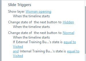 Articulate Storyline lets you apply multiple triggers to the same object. You can also apply triggers to master slides and content slides. Here are the rules regarding the order in which all these triggers get executed when learners view your published course.