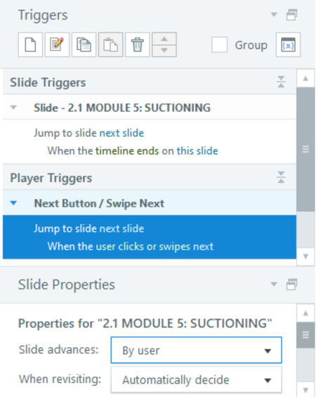 I want to have the learner stay on the slide for about 10 seconds (timeline) and THEN be able navigate using "next" on the player "by user." Despite trying to add all these trigg...