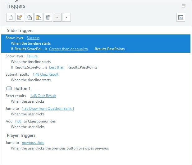 this is a great thread! I'm experiencing some of the issue above with my question variable coming out more than my hardcoded quiz question number (i.e. question 42 out of 40). I'm leveraging multiple question pools (have a total of 40 questions) and they are random, but a few have questions that are linked to each other so we can ask multi-part questions. Other than making sure the slide is set to 'reset to initial state' and making sure only the main question slides have a trigger to add to the QuestionCount variable I have set up, that's about all I can do if I understand correctly, right??