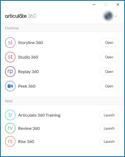 The picture you attached shows the online access for Articulate 360: the Dashboard, Rise, Review, etc.