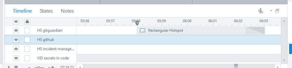 I have placed 3 overlapping hotspots in a video (see screenshot). Each timed to be triggered at different timepoints in the timeline(see screenshot). The purpose of this timed hotspot is to make the learner click on the screen when they recognise risk factors in the video. Each hotspot will then trigger a specific quiz layer. For example Hotspot 1 will trigger Quiz 1; and so on.