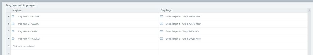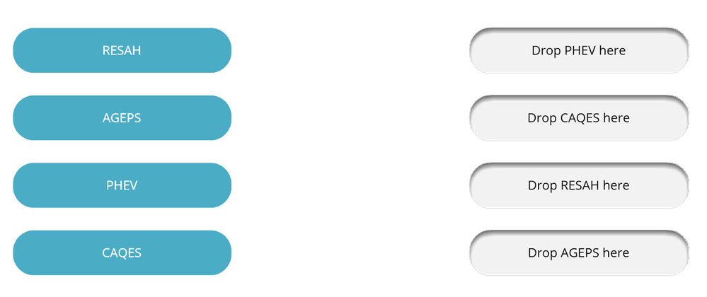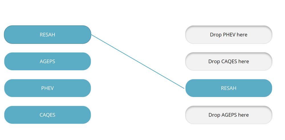 Unless I'm misreading your question and sample, this appears to be a basic drag and drop. Each Drag Item has a single correct Drop Target