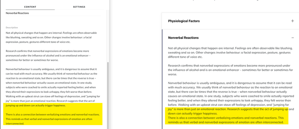 I'm struggling with paragraph spacing in accordion blocks. Sometimes it works, sometimes not. Adding a blank paragraph in the Edit Dialog does not always replicate in the actual text as you can see in this screen capture. Is this a bug?