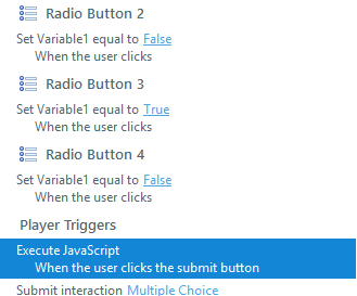 - Set LearnerChoice to "Option A" when the learner clicks that option.