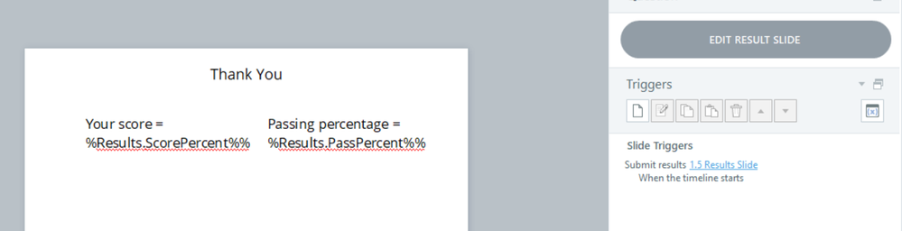 I displayed the Total Score variable on the results slide in addition to the percentages shown by default on the results slide.