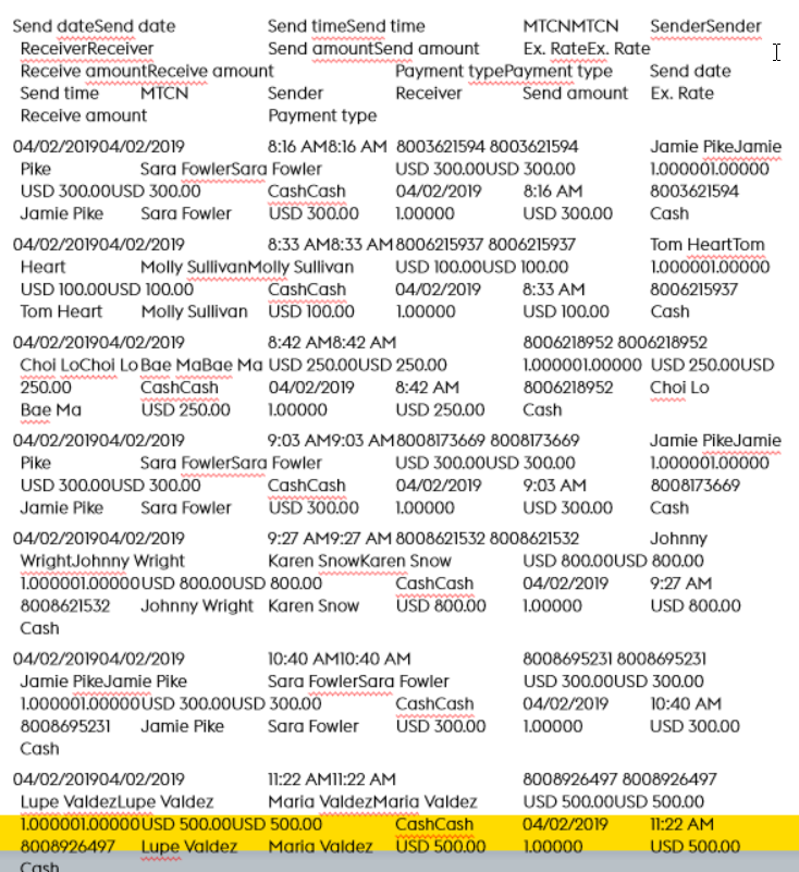 Here is how the table pastes from Word. No table is brought over in the process and the text duplicates.