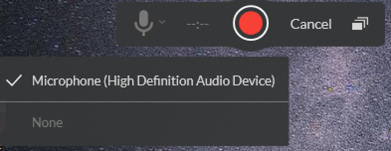 Yes, the mic is visible and I was able to select it. Peek still does not record audio. It works fine on my Mac, with a built-in mic - I'm glad you have the Peek app for Mac!