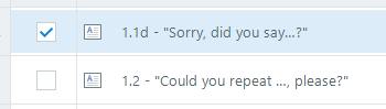 Personally, if I'm the learner, I want to check on the text, and forget about the check boxes. If you want to do it that way, on slide 1.10, I've made the changes I've suggested, as well as given a sample (for "Thank you very much. That was helpful.") that shows how the text can be clicked, instead of the check box.