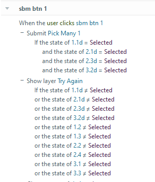 In my scenario, the learner has 4 possible answer choices, two of them being correct. The learned needs to select both correct answers to be shown the correct feedback. The correct and incorrect feedback is on two separate slides - instead of layers.I have it working, I think, but the transition to the feedback is choppy and seems clunky. Would anyone have any suggestions?