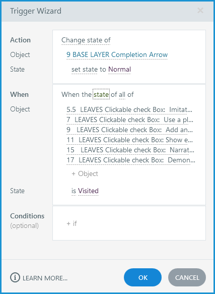 If you want to show the Completion Arrow when the user has clicked all of the correct checkboxes, use this trigger instead: