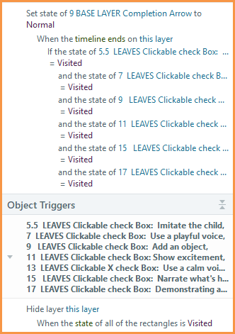 #2. I need the triggers to allow the learner to see feedback (green check marks). I thought about making a conditional button to go back to the base slide, like EricSchaffer-d1 suggested. The issue with that is A. I have many activities with slide layers for additional information across a series of 6 courses and this will be the only one with this button. I would prefer to use a solution that did not contain another button to trigger back AND whenever I add an additional condition to get back to the base slide, it messes up the purple arrow (which is programmed with variables) that indicate the slide is finished and the learner can click the next button.