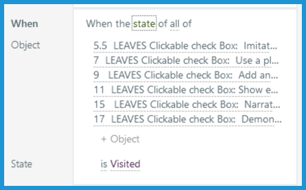 - Change the motion path trigger so it runs when the correct checkboxes = Visited.