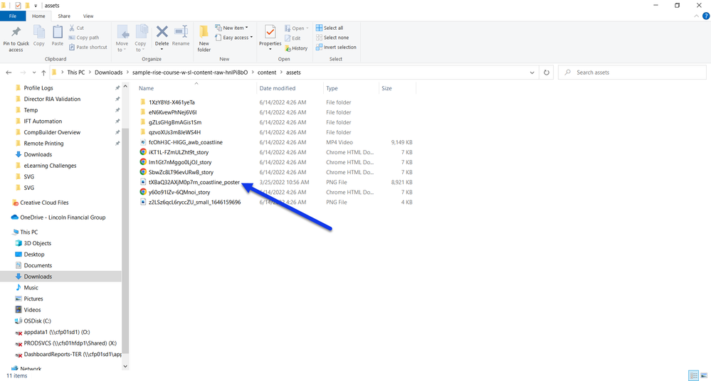 Open the assets folder (contents > assets). Locate the compressed PNG video thumbnail (I think Rise calls thumbnails "posters"):
