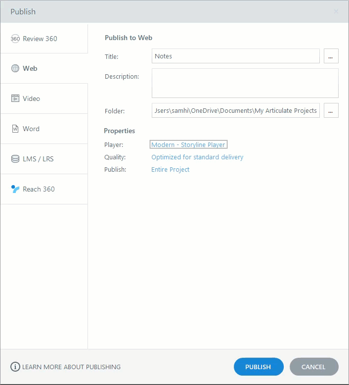 This post covers the same issue: Help- 'Publish' button not visible on screen | Articulate - Community