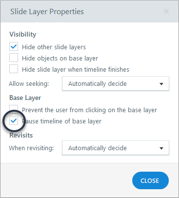 Based on your description (or my understanding of your description)  You may be able to address this issue by adjusting the layer properties - choosing "pause timeline of base layer"