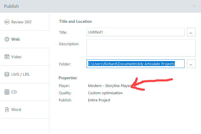 Thank you very much for your reply and for taking the time to include screenshots. I didn't in fact publish it with the Modern player style. I shall do that in the next few days.