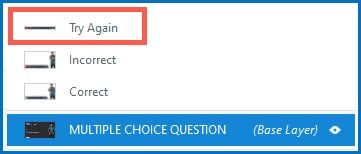 What if you don't want to show the learner’s previous answer when the Try Again layer closes? Depending on the type of question, you can reset the responses.