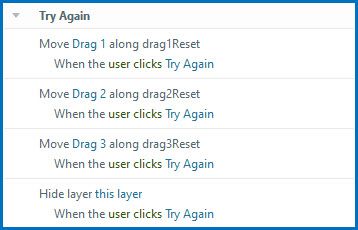 - Add triggers to move each draggable object on its 0-px motion path when the learner clicks the Try Again button.