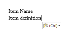 Highlight only the item names and definitions and copy them. I have only one item, but you can copy hundreds at a time: