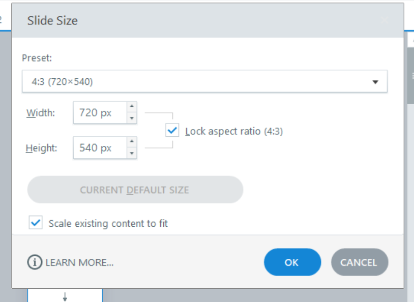 - Now my smart colleague chose to change the screen size to 720x540. I had kept it 960x540 earlier. Now she wants me to simply copy and paste the slide as shown in below screenshots for ref.