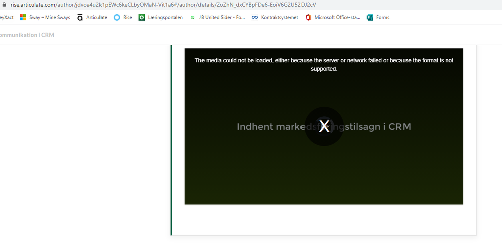 We have problems playing mp4-files in Rise? No problems when using Internet Explorer, but problems when using Chrome and Edge.