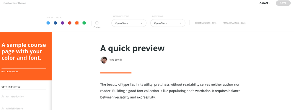 I am at the moment developing WBTs with rise for a client. We have different themes and fonts for every WBT.