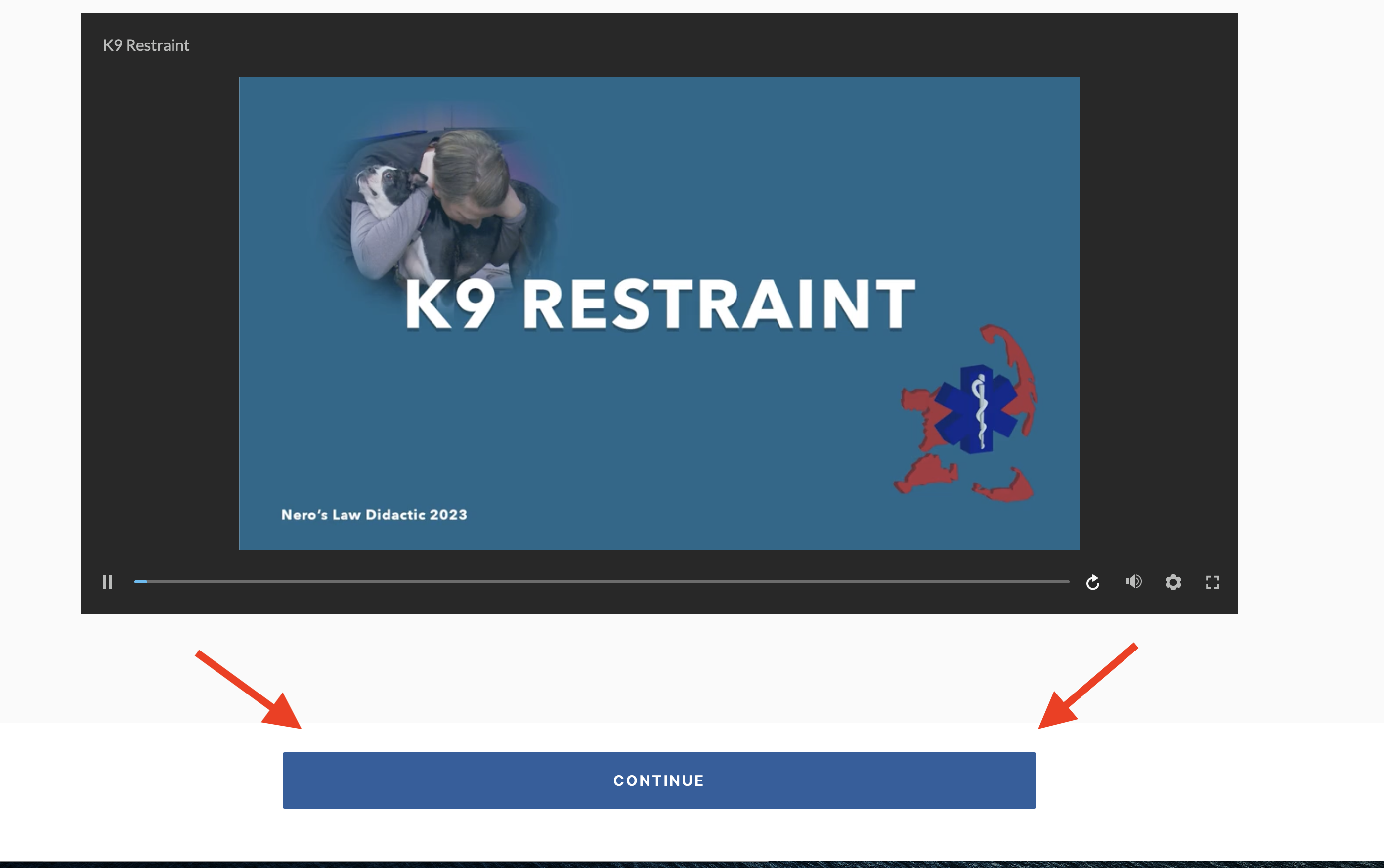 As for the Continue button, set the Tracking option when you Publish the Storyline. You can have the completion of a quiz as the tracking mechanism to show the viewing is complete. Or you can create a slide at the end with a generic message about the learning having completed the video. And on that slide, add a trigger to mark the course complete. This way, the tracking setting has to be met for the Storyline block to be marked as complete.