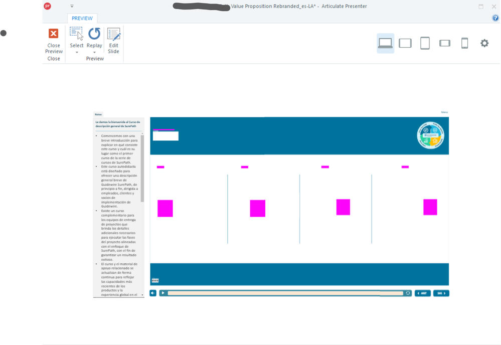 Published output for LMS from Articulate Presenter has pink boxes instead of content