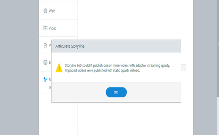 Every time I publish to the lms I am now getting this error message popup. Even on my previous projects that didn't have an issue. Any way to remedy this?