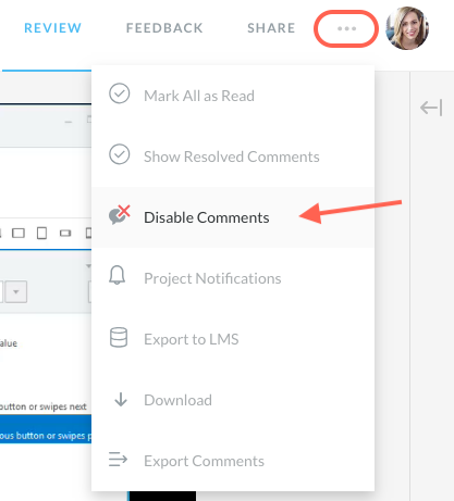 Yes, the project owner can disable comments for a Review 360 course.