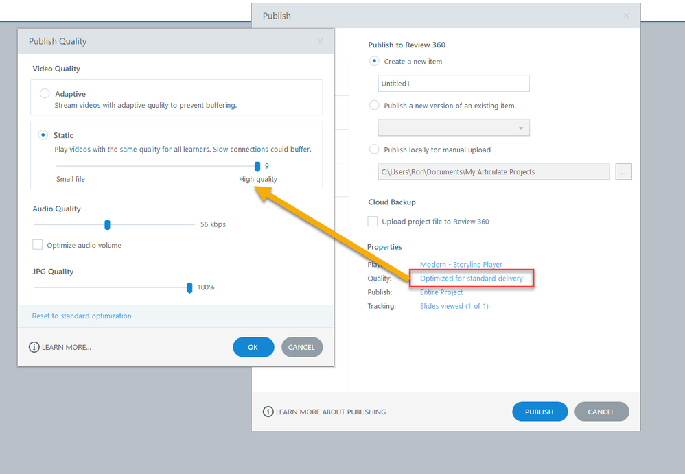 Another thing to consider is the Publish quality settings. Turn off the adaptive video and choose static and adjust to a higher quality