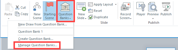 It's still a good idea to delete unused question banks, because they waste space in the file. You can do that from STORY VIEW. Select Question Banks, and then Manage Question Banks.
