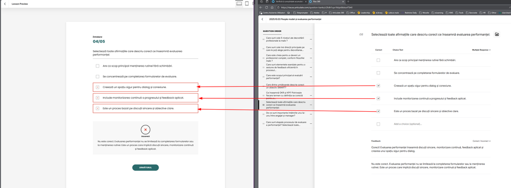 The issue I’ve encountered is related to multiple-response questions. When a question is moved to the question bank, the correct answers become unchecked (see screenshot 2025-10-03_14-32), whereas in the lessons, the question is fine and the correct answers remain checked (see screenshot 2025-10-03_14-34).