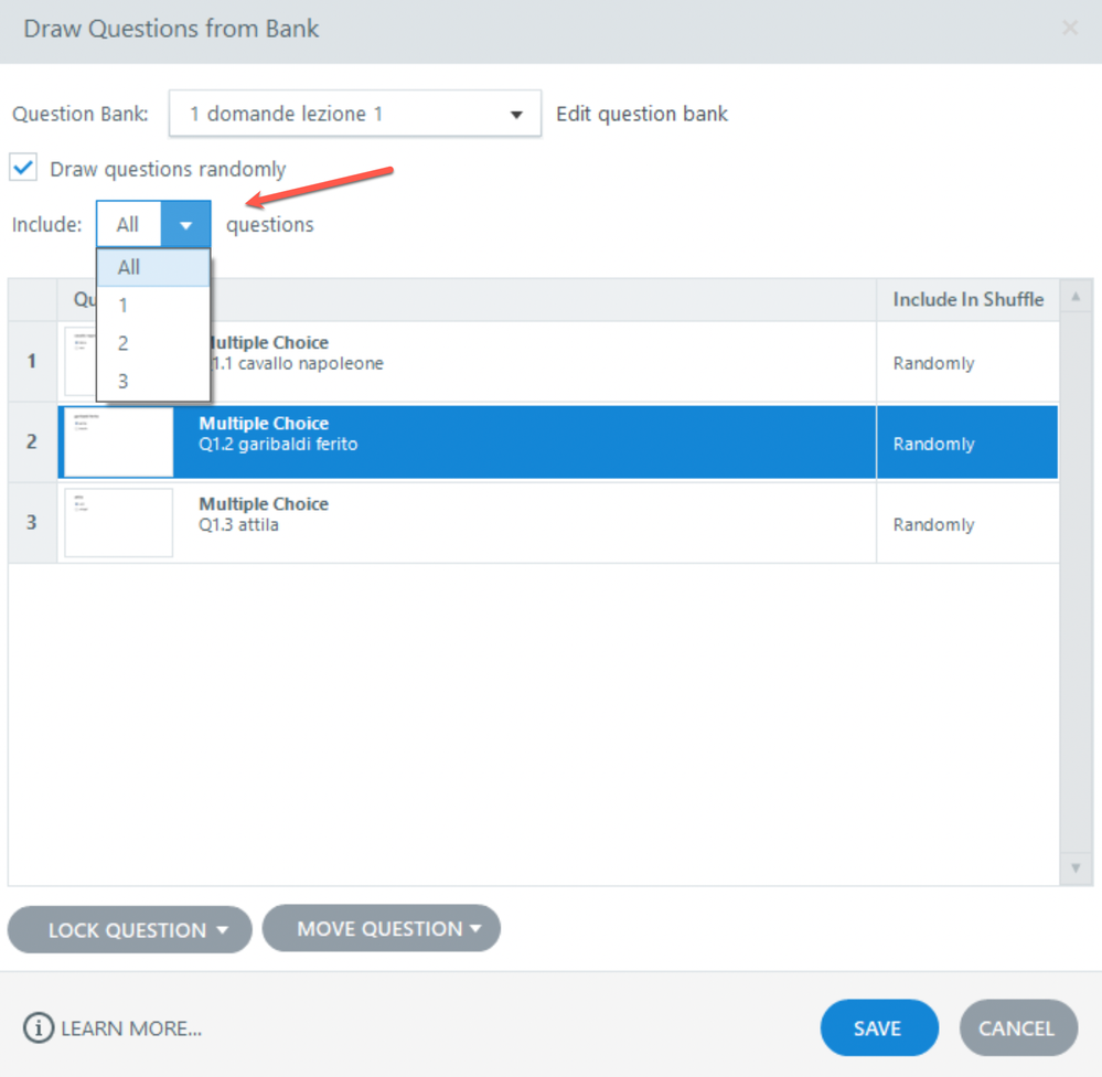 Mi dispiace che tu abbia questo problema con le banche di domande randomizzate! Non sono stato in grado di risolvere il tuo problema, quindi ho aperto una richiesta di assistenza per tuo conto. Presto dovresti ricevere notizie dai nostri tecnici dell'assistenza per aiutarti con il tuo file.