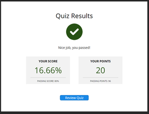 Any idea why my quiz results are showing as passed when it's a failing score? I can't upload the project.