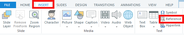 Note: You can copy-and-paste the variable reference from the default text box into your own phrase. Or you can place your cursor in a text box and then use INSERT > Reference.