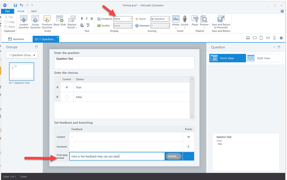Quizmaker - Feedback Summary at the end of test not "by question"