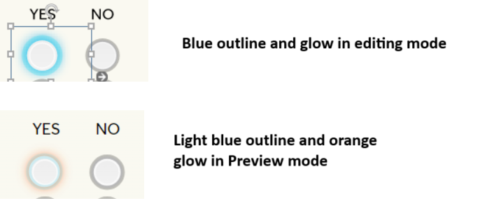 I'm using radio buttons and have edited the Hover state so they have a blue outline (radio outline) and a blue glow effect. The format looks fine during editing, but when I preview, the blue outline is barely visible and the glow effect is orange, not blue.